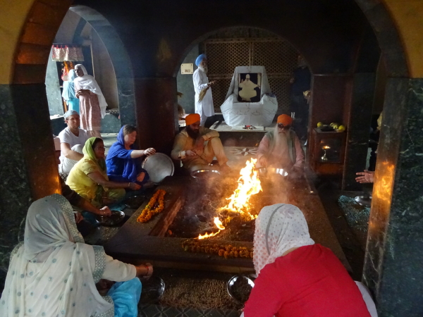 They took 2-hour shifts around the clock in the World Peace Havan reading Jaap Sahib, Hanuman Chalissa, and Chandi di War. Many of them also went to the central havan every morning every morning at 2 a.m. to sing Baba Siri Chand’s Arta to Guru Nanak. They sat there again each morning from 8:15 to 9:30 for the special havan dedicated to Baba Siri Chand. They attended the Akhand Paaths going on continuously in Gurdwara Sarbat Sangat, and there sevadars taught them how to sing Anand Sahib, the hymn of great spiritual bliss composed by the Third Sikh Guru. Every afternoon they had Punjabi lessons offered by Gobind Sadan sevadars, followed by in-depth discussion of and meditation on passages from Guru Granth Sahib. Every evening they also went to Jesus’ Place and lovingly recited the Lord’s Prayer in Swedish along with the nightly prayers in other languages.